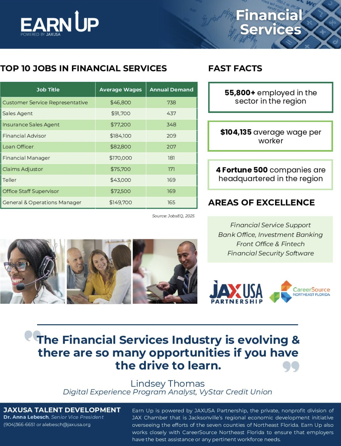Christina wasn’t able to continue to work in her profession in the U.S. because of language and credentialing requirements and systems. Determined to thrive, she enrolled in language and accounting classes at Florida State College at Jacksonville and worked two part-time jobs, all while starting a family. While working part-time at a tax preparation services business, Massara discovered her aptitude and interest in working in the financial services industry. She earned an associate’s degree at FSCJ and pursued full-time work after her youngest child entered school.